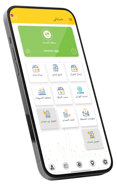 خدمـة تمكنك من السحب النقدي لإي مبلغ من حسابك في محفظة يمن والت من أي وكيل أو نقطة خدمة