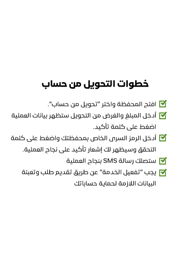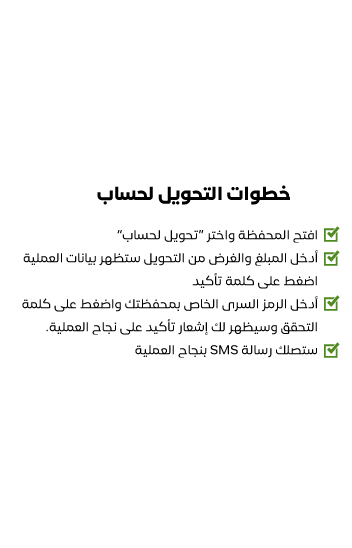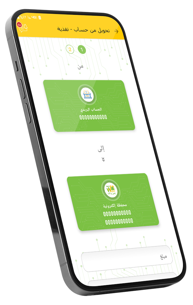 خدمة تمكنك من تغذية حسابك في المحفظة من خلال التحويل من حسابك في البريد اليمني (جاري - توفير - حساب آخر)